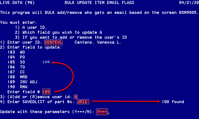 - After hours, go to LIVE.DATA and run the 2 BP programs