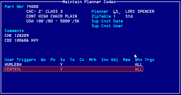 - ESC.BANK<11>- mv list of purchase/MRP/WO codes