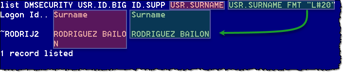 FMT overrides the value in F5 of the Dict (note the value in green does not wrap because FMT is bigger than the Dict)