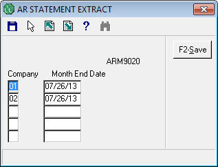 Enter the desired company and month-ending date, then hit F2 to save the change.