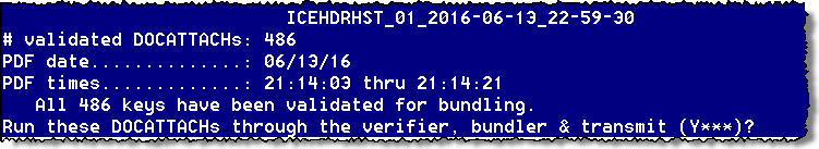 - Save DOCATTACH.KEYS to a SAVEDLIST called PDF.BUNDLE.INVOICES.cc or PDF.BUNDLE.STATEMENTS.cc for possible debugging