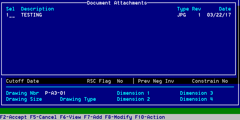 You should now see the global screen for the DOCATTACHs (SYSI0238.N).