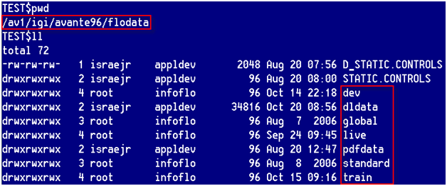 flodata UNIX Directories dev This is a parent UNIX directory. It contains the DEV.DATA and TEST.DATA accounts. dldata This is a common dumping ground used by IT to import and export data. All accounts have VOC pointers to this UNIX directory. global This comes from Epicor, but it does not appear to be actively used. live This is a parent UNIX directory. It contains the LIVE.DATA, LIVE.ODS and ME.DATA accounts. standard This is a parent UNIX directory. It simply contains the core Epicor software without any changes. train This is a parent UNIX directory. It contains the PILOT.DATA and TRN.DATA accounts.