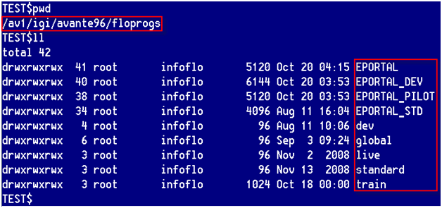 floprogs UNIX Directories EPORTAL The "live" account for the DaytonAccess web site. Unlike the Avanté software which is broken into two accounts (one for data and a second for programs/DICTs), EPORTAL accounts contain all the data, programs and DICTs. We have never done a data refresh with any EPORTAL accounts, but since almost all the data used by the web site actually comes from the Avanté accounts, this is not a problem. EPORTAL_DEV The development account for the DaytonAccess web site. The "DEV" portion of the name was a poor choice since it actually connects to the Avanté TEST.DATA account, not the DEV.DATA account. All ePortal changes are first done here. Once complete, they are moved to EPORTAL_PILOT. EPORTAL_PILOT The PILOT (or middle) account for the DaytonAccess web site. This is where the users verify that changes have been made correctly before rolling them to the EPORTAL (live) account. dev Parent UNIX directory containing all the programs and DICTs for the dev realm. global A UNIX directory containing various global software packages that are used by Avanté. live Parent UNIX directory containing all the programs and DICTs for the live realm. standard Parent UNIX directory containing all the untouched programs and DICTs provided by Epicor. train Parent UNIX directory containing all the programs and DICTs for the train realm. - flodata