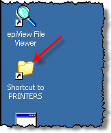 On the mboptio01 desktop is a shortcut called "Shortcut to PRINTERS". It points to C:\WINDOWS\system32\spool\PRINTERS.