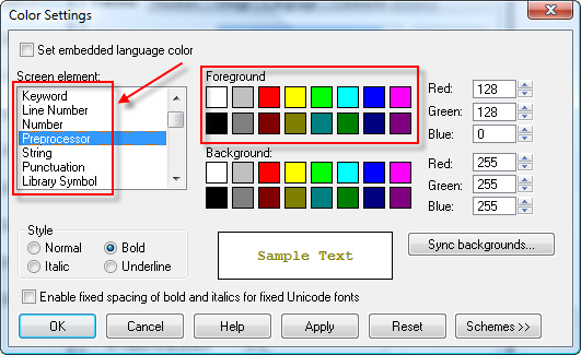 Assign the Keywords, Operators, Preprocessors, etc then assign them to colors